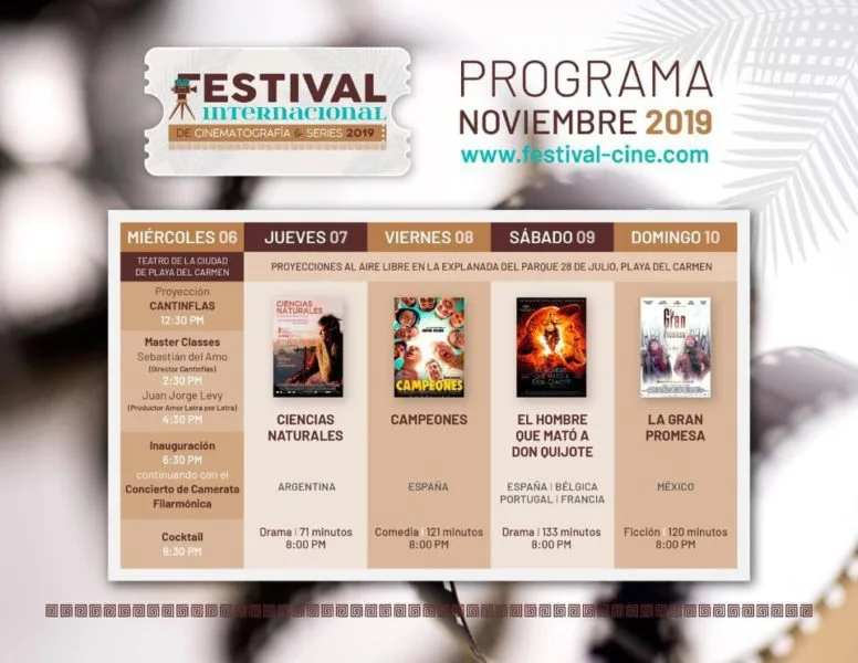 Mañana 6 de noviembre a la una de la tarde en el teatro de la ciudad de Playa del Carmen dará inicio el Festival Internacional de Cinematografía y Series 2019. Quienes deseen asistir la entrada será gratuita.