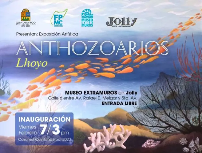 Isela Carrillo Cupul, directora del Museo de la Isla, expresó que la exposición “Anthozoarios”, que es el nombre científico de una familia de corales marinos, está conformada por dos murales sobre la vida marina que decoran la cafetería Jolly, además de 16 obras elaboradas con la técnica de repujado.