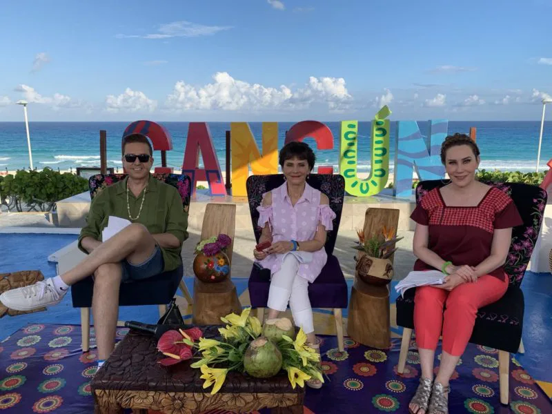 Pati Chapoy, Daniel Bisogno y Monica Castañeda, y toda la producción del programa de exclusivas de la farándula transmitieron en vivo desde Playa Delfines, balneario mejor conocido como El Mirador de Cancún.