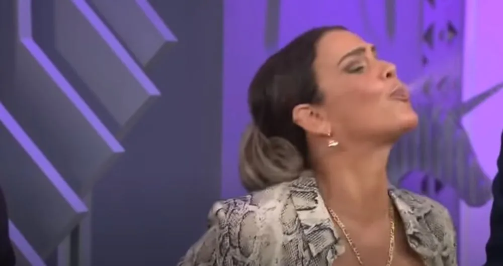En las imágenes que forman parte de la emisión, al parecer La Aventurera estaba probando algo cuando al dar un trago a una botella escupió y a propósito volteó hacia la conductora; Yolanda y dos hombres se encontraban también presentes en ese momento.
